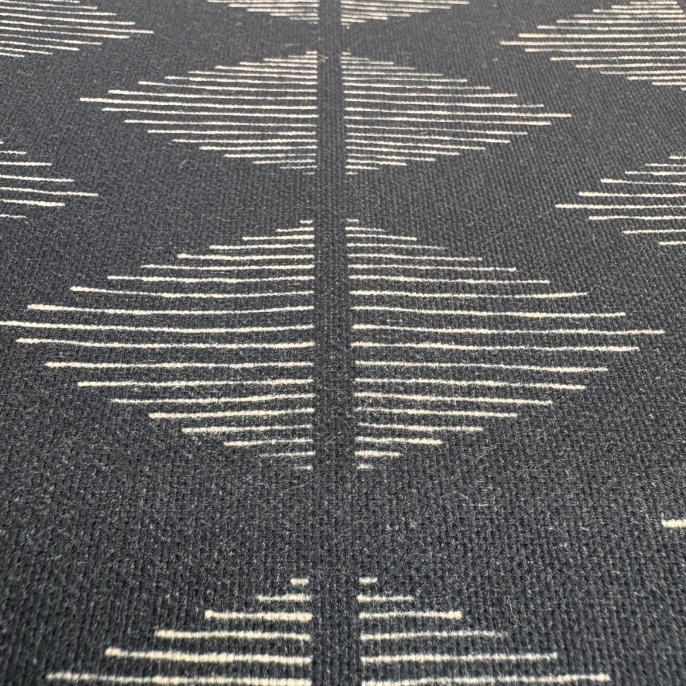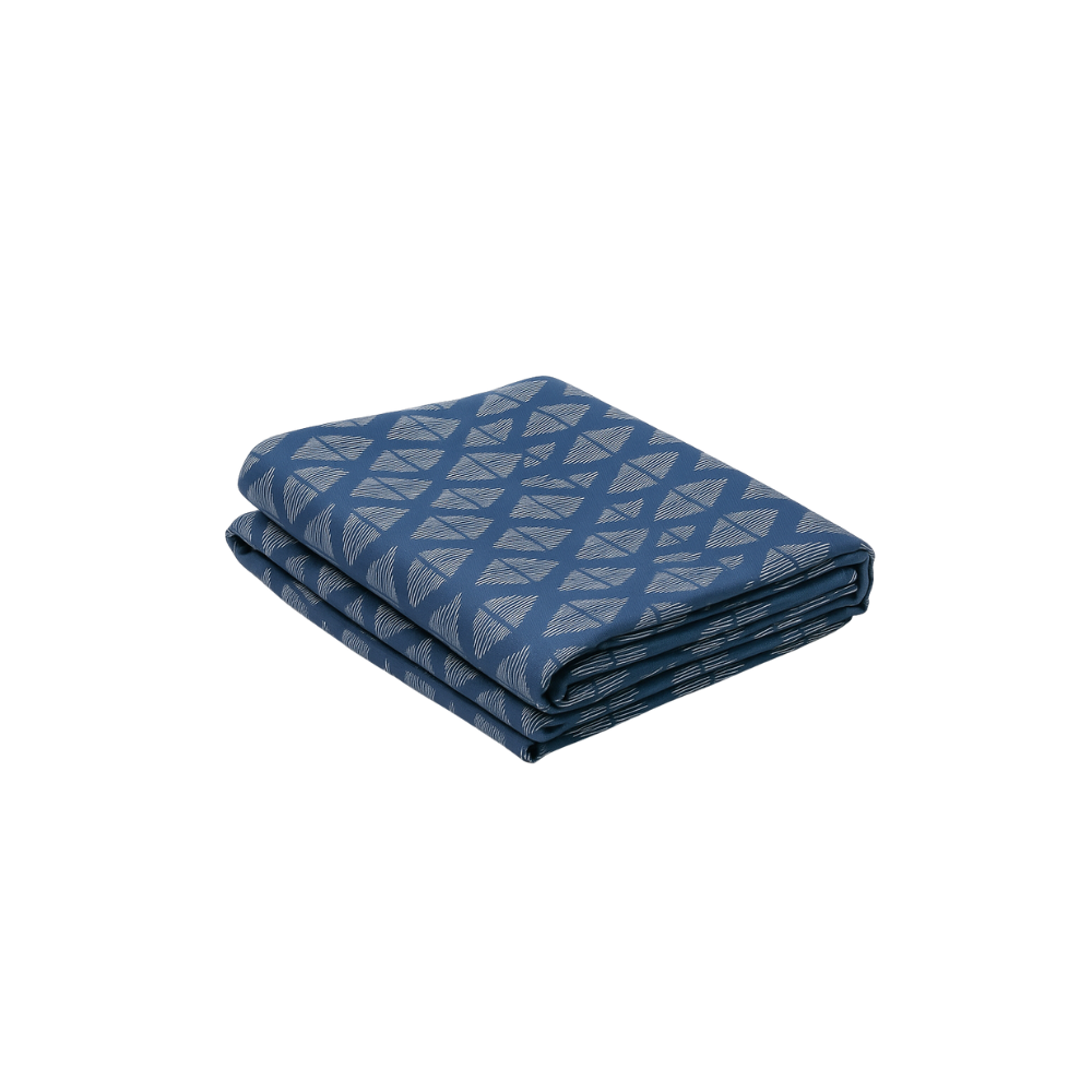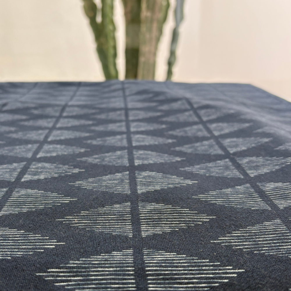 TOALHA DE MESA COM ESTAMPA GEOMÉTRICA DE LOSANGOS LISTRADA A AZUL MARINHO E BRANCO