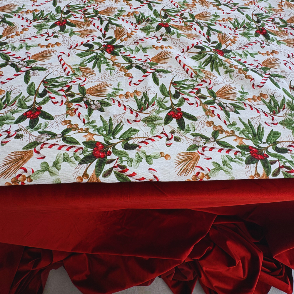 Toalha de mesa em veludo vermelho com estampado natalício | 160 x 270 cm