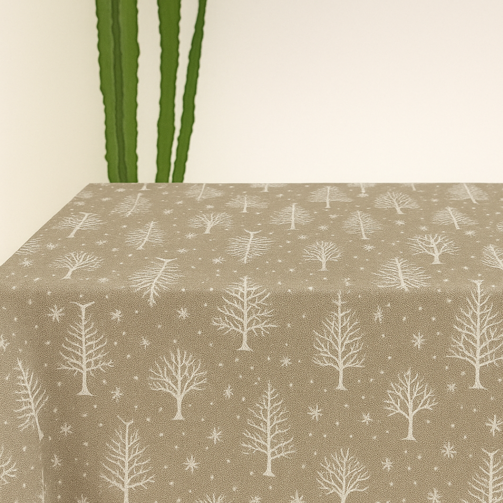 • Toalha de mesa de Natal com pinheiros e flocos de neve brilhantes | 130 x 240 cm; 130 x 250 cm